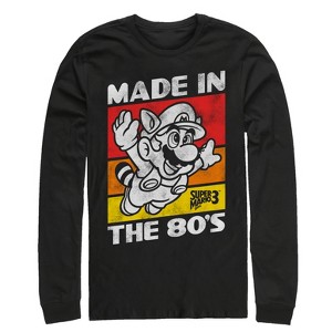 Men's Nintendo Raccoon Mario Made in the 80's Long Sleeve Shirt - Black - Small