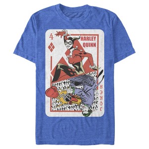 Men's Batman Harley Quinn Joker Poker Card T-Shirt - Royal Blue Heather - X Large