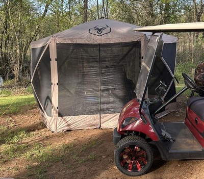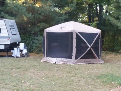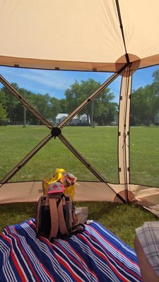 Gazelle Tents G6 8 Person 12 by 12 Pop Up 6 Sided Portable Hub Outdoor Gazebo Screen Canopy Tent with Large Main Door and Screens, Desert Sand