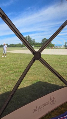 - 6-SIDED GAZEBO: Spaciously accommodates 8 people with chairs and a center table; Offers 92 square feet of floor space; Set up dimensions: 124 x 124 x 86 inches