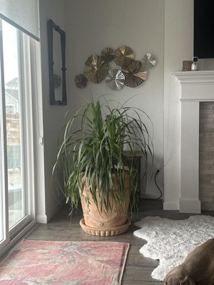 the metal fan wall art piece looks great - a mix of size and colors - smart!