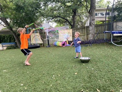 [This review was collected as part of a promotion.] Giant bubbles are a HUGE hit! My kids and all of their friends really got a kick out of making giant bubbles so this is one of our go to birthday gifts now. It was easy enough for the kids to do and they were all very “wowed” by it. The whole thing is well designed and works great.