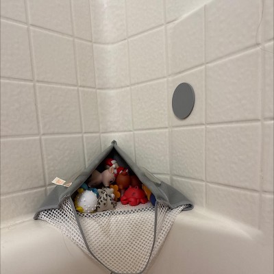 Munchkin High'n Dry Corner Bath Toy Organizer - Gray: Cotton Material, Bath Toy Storage, Drain Holes, 10.8" Height