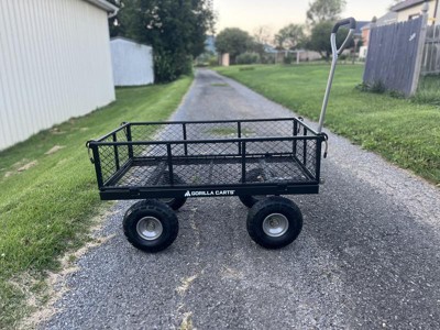 [This review was collected as part of a promotion.] For many years I’ve been using A regular wagon to pick up my sticks and logs and the plastic would always break, but now with the gorilla cart it is so much easier to turn with its 360 degree turn and I can now put on more stuff with the collapsable walls. Overall an amazing product