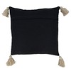 Featuring a cohesive stitched design, completed by chunky tassels at the corners, the Stitched Tassel Throw Pillow brings beautiful style, as well as a touch of whimsy to any space. It uses a black and white color combination, which adds timeless class to your décor. It's very easy to pair with a wide range of solids.