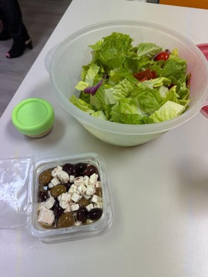 [This review was collected as part of a promotion.] This Greek Feta salad was delicious! It’s the perfect blend of bitterness from the olives and the salt from the feta. We had this salad along with a prime rib dinner, and it was the perfect companion. Although in olive oil, nothing was oily— instead the oil added to the taste. The package was easy to open and was perfect for holding the salad that was left over. It is the perfect size for a 2-3 people.