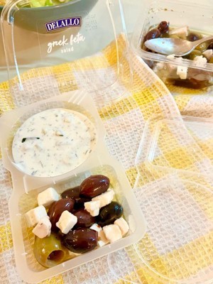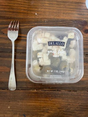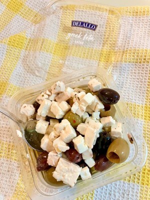 [This review was collected as part of a promotion.] The DeLallo Greek Feta salad is so so good. It's the perfect mix of different types of olives and feta cheese in a delectable dressing. My family ate the whole container in one sitting.