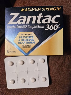 [This review was collected as part of a promotion.] Zantac Maximum Strength 360 really did help with acid indigestion and heartburn. I followed the directions on the package and took one tablet any time from 10 to 60 minutes before eating or drinking. For me, 60 minutes before eating worked really well for me. It's important to swallow with a glass of water and not to chew the tablet. The tablets are very small and easy to swallow. Zantac works by preventing heartburn from happening. I can now eat again the foods and beverages that are my favorites. I was always bothered by foods and beverages that contained tomatoes, tomato sauce and tomato juice. I now enjoy spaghetti, chili, lasagna, pizza, etc. Zantac really works for me!
