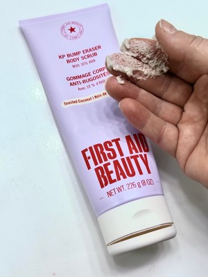 Simply spectacular. First aid beauty's KP eraser body scrub has completely transformed my skin. Tiny imperfections and rough texture disappointed in a matter of day. Plus, the toaster coconut scent is delicious and lasts all day. Highly recommend for your adsorption.