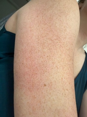 [I received this product in exchange for my honest review] I love the FAB FIRST AID BEAUTY brand. I get bumps associated with KP and I have tried their original formula and their strawberry scent in the past and liked them a lot. It's been a moment since I've used the products before I was introduced to this new scent, and as you can see in my "before" picture, I do have a good amount of bumps. In the "after" picture, I've used this product consistently as directed for a little over a month. You can see the difference. It is undeniable progress! I will say, I'm partial to this particular scent, and that's why it gets 4/5 stars. I LOVE a coconut scent, however, this is called a "toasted coconut" scent. In my personal opinion, this product's scent smells more to me like a toasted marshmallow than a coconut. Otherwise, you can see the results! 💙
