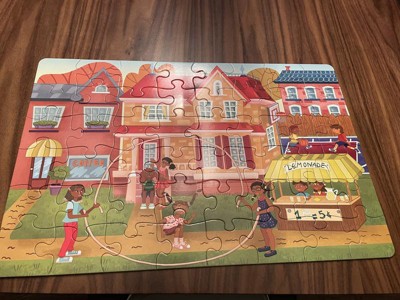 Not only is this puzzle beautifully constructed, but the scene is such a refreshing idea- depicting children playing together of different genders and races. The size of the pieces makes it easy for kids of all ages to manipulate and move pieces around and pour them together. It is exactly what kids need to see and I love sharing this with my daughter and will share it with her to take to school to play with her friends. The pieces are big and easy to hold and manipulate, and the box is sturdy for storage. Love.