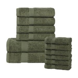 Make everyday a little more comfortable with the Quick-Drying Cotton 12-Piece Towel Set by Blue Nile Mills. This versatile collection combines a chic solid color with a modern chunky chevron border, adding a touch of style to your bathroom. Designed for quick-drying convenience, these lightweight and thin towels are soft to the touch and built to last. Whether you're stocking up your own bathroom or getting ready for guests, the array of cheerful, eco-friendly dyed colors will effortlessly complement your space, offering a practical and stylish bath essential.