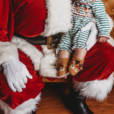 Hudson Baby fleece booties are comfortable, cozy baby booties made with fleece material that will keep your little one's feet warm and comfortable. Our booties wrap around your baby's foot and fasten in the front with a velcro closure, so they are easy to put on, fasten and stay on. Our fleece booties feature non-skid soles to prevent your baby from slipping and falling when they start to walk and run. Hudson Baby Infant and Toddler Girl Cozy Fleece Booties, Girl Reindeer is a great baby essentials set for your little one. Hudson Baby offers the widest assortment in Christmas apparel, Christmas outfits and sweaters, Christmas pajamas, Christmas blankets and throw blankets, and Christmas socks. Our vast product assortment for babies, toddlers and kids make for great stocking stuffers for the whole family.