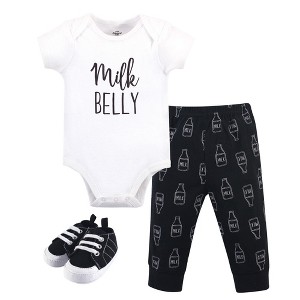 Little Treasure Baby Boy Cotton Bodysuit, Pant and Shoe 3pc Set, Milk Belly - 1 of 1