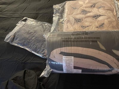 [This review was collected as part of a promotion.] Love this comforter set! It is well made and is very pretty!! I love the fact you get four pillow shams (two different designs) that go so well with the comforter and you get two really cute throw pillows. It comes shrink wrapped for shipping and immediately fluffs up. The longer the pillows and comforter were out the more they plumped up! This is just such a good quality and beautiful design that could go with so many other colors in a bedroom. First Class comforter!