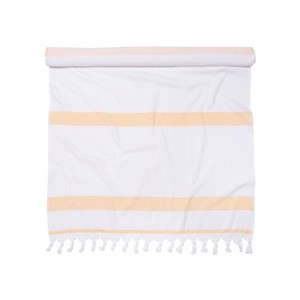 Lounge by the pool or relax on the beach with style using the Cotton Oversized Striped Fouta Beach Towel with Tassels by Blue Nile Mills. Crafted from cotton, this lightweight towel ensures quick drying after a swim. With a soft woven texture on one side and fast-drying terry cotton loop on the other, it offers comfort and functionality. Measuring a comfortable 35 x 68, it features a vibrant striped pattern in various seasonal colors, complemented by decorative tassels at each end for a touch of modern flair. Compact and versatile, this towel fits seamlessly into any beach bag or suitcase, making it perfect for all your aquatic adventures.