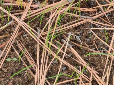 Mystery seedlings along with grass.