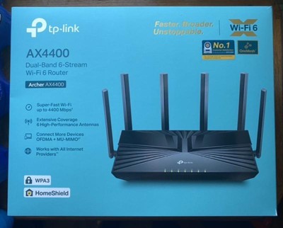 The Archer AX4400 Dual-Band Wi-Fi6 router arrived packaged well; installation was a breeze, even for this busy, minimally tech savvy mom. There is a useful app that came in handy during set up, made configuration simple and now I’m able to monitor my connection anytime. I will be purchasing one or two extenders to make my upstairs device connections more reliable. Overall, this router has been great in my 2400sq ft, two level home.