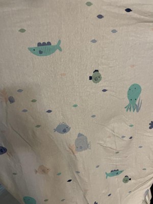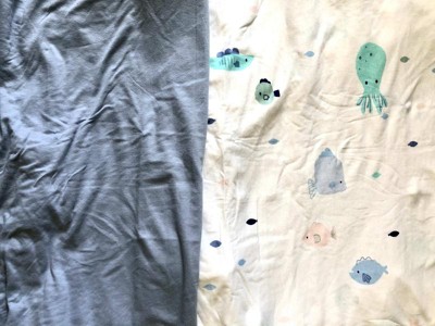 Fitted Cotton Jersey Crib Sheet 2pk - Cloud Island™ Fish Friends and Solid Blue: Animals, 6" Depth, 100% Cotton