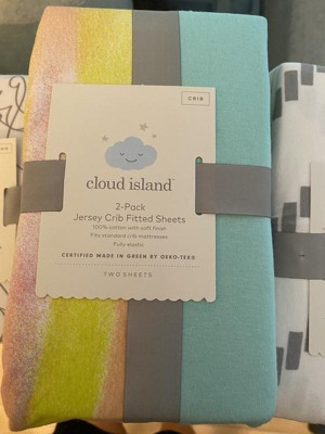 Fitted Jersey Crib Sheet 2pk - Cloud Island™ Brushstrokes and Solid Aqua: 100% Cotton, Abstract Pattern, Fits 6" Mattress