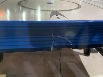 The table came broken. I glued it. The paddles don't work very well the felt buckles up on them when you play and the puck sticks to them.the scanner for the scoring is to sensitive. We only played 3times. Not very happy at all.