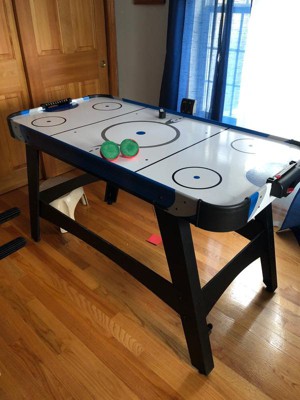 Santa brought this for my grandkids ages 12 and 9 and they have really enjoyed playing it over Christmas break. It’s a good air hockey table for kids. It’s a bit small for adults, but still fun.