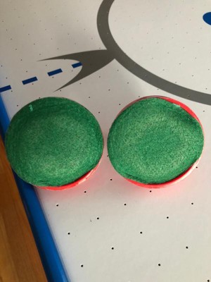 The pucks are very light and the velcro kept coming off the puck sticks. We had to readjust the slot on each end because it was impossible to score. The puck would just bounce right off the scoring slot. It was somewhat frustrating but if it continues to work as we have adjusted it, it will be worth the money.