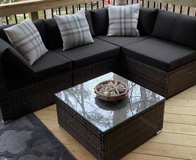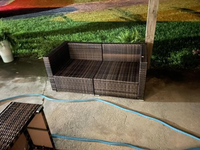 As previous review… screws are not long enough so I had to use construction clamps to hold pieces tight together for the screws to grab. But for the price it is a nice set. Considering buying a second set to make an extra long couch and love seat for back porch
