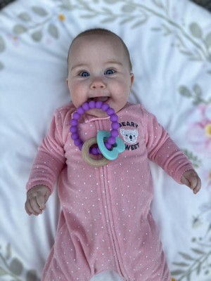 I recieved this Wood + Silicone natural teether complimentary in exchange for my honest review. This teether is very soft material. My baby loves chewing on this for comfort. I love the colors of this product too. This makes it easy for my baby to carry with them or have in their hands.