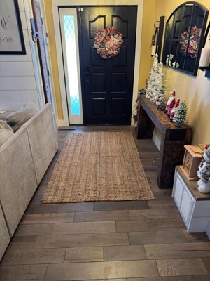 I was so excited to order this rug, great price for a great size. Positives: The look I was going for I knew this rug was not made for its "softness" but not as hard as other jute rugs I've experienced. Negatives: Dirty, bunch of debris when laying it out. have a good vaccum and rug pad to put underneath.