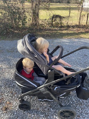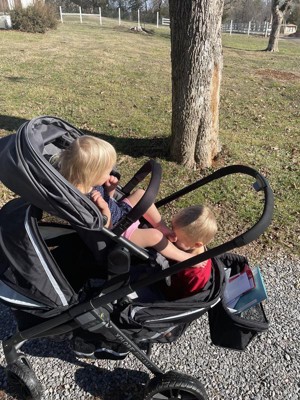 We got this stroller for our growing family and it has been perfect! It fits my two toddlers in the wagon area and my 9 month old up top. It’s super easy to put together and very light for traveling.