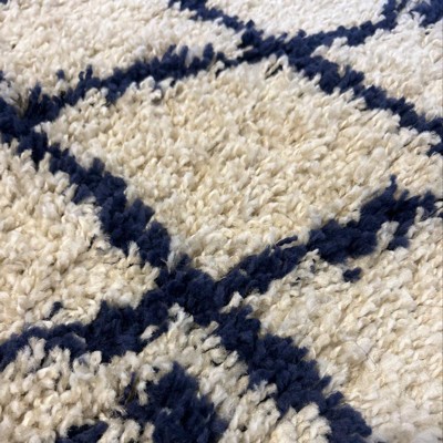 - Inspired by vintage Beni Ourain rugs, our soft and fluffy shag yarns make it easy to go barefoot. Our classic Moroccan pattern has a navy diamond trellis on a field of ivory. Anchor your Bohemian space; add softness to a bedroom, living room, or cozy reading nook; this fluffy shag rug has timeless style.