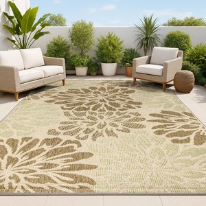 JONATHAN Y Zinnia Modern Floral Textured Weave Sage/Brown 8 ft. x 10 ft. Indoor/Outdoor Area Rug, Non-Shedding, Easy-Clean
