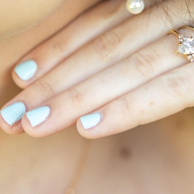 The aquamarine aura shade needs at least 3 coats and takes at least 10 minutes to dry.