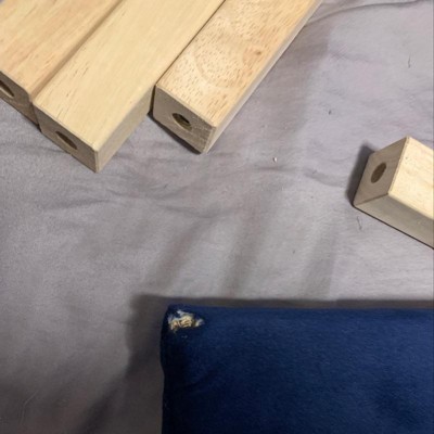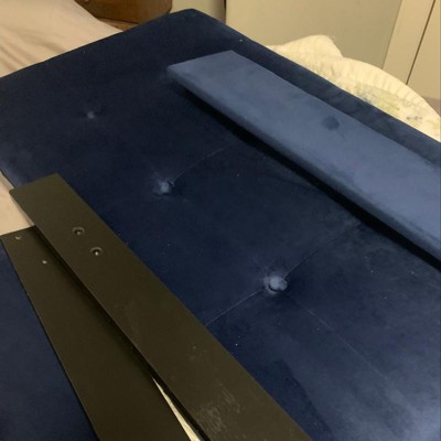 Side rail damaged upon arrival, however everything else looks great. I haven't put it together yet, because I'm debating whether I should send it back for an exchange. One of the side rails has a damaged corner. My son loved the color and velvet upholstery.