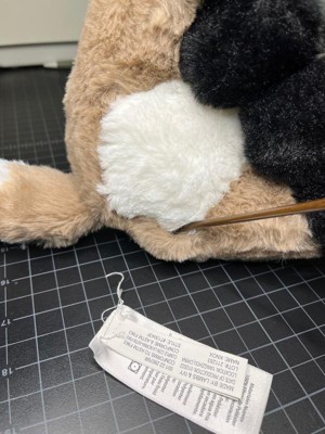 This little guy is as cute as the pictures. The material is soft, and it's firm enough to stand upright but soft enough to hold. Unfortunately, it also comes with a bunch of tags and plastic packaging which are destructive to get off. One plastic tag is embedded in its head, so leaves half a plastic tag inside unless you want to open its head up. Worse, though, the cloth manufacture/care tags are stitched in using the *seams* in the fox itself, so if you go to snip the tag off, it literally splits open the bottom of the animal. Really poor design for what is otherwise a great toy. We had to do some emergency hand-stitching repairs to save it.