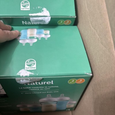 I ordered this product for pickup at target. We opened this product and realized it has only 2 small bottles not 3. Not sure if it's company's fault or i got the used bottles. Also my baby is having hard time to get milk out of these. He kept sucking for 20 mins and only got like 5 ml.