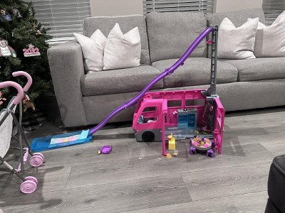 Great camper, lots of accessories, cool slide on top. No barbies included.