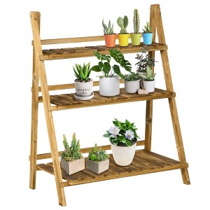 Outsunny 32'' Tall Wooden Plant Stand, 3-Tier Foldable Flower Stand Ladder Display Plant Shelf with Slatted Bottom for Garden Indoor Outdoor