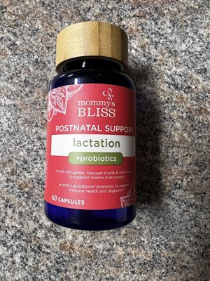 [This review was collected as part of a promotion.] I got the Mommy's Bliss postnatal support lactation + probiotics but have not been able to take them yet. I will update after I have enough information for a full review but I have only heard great things about this company and product. I am excited to be able to try it out.