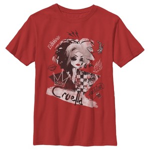 Boy's Cruella Fashion Sketch T-Shirt - Red - X Small