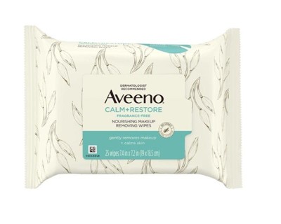 Aveeno Calm + Restore Nourishing Makeup Remover Face Wipes with Oat Extract - Fragrance Free - 25 ct: Hypoallergenic, Alcohol-Free, Paraben-Free