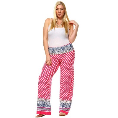 Amp up your wardrobe with these popular wide-legged palazzo pants in exciting fashion prints. Youll feel comfortable and relaxed, yet well-dressed for any occasion. Made with premium quality stretchy knit.