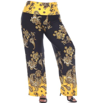 Product Name: Women's Plus Size Floral Paisley Printed Palazzo Pants Red 1X - White Mark