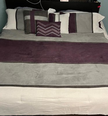 [This review was collected as part of a promotion.] This faux suede comforter set is very nice. My husband also loved the colors, grey is his favorite but also has purple giving it a feminine touch. The color scheme give the perfect balance to our bedroom. It comes in a 7 piece, with decorative pillows that gives it that extra element of elegance. The pillows and comforter are made really well, high quality materials and embroidery. This set really gave our bedroom a fresh and upgraded look. We are very impressed with the look, quality and materials in this bedding set.