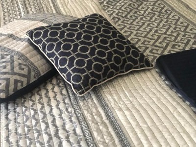 [This review was collected as part of a promotion.] The Bennett reversible cover is beautiful! I was not sure on the pattern, but once I took it out of packaging I had a whole other opinion. The shams fit perfectly on my pillows, and the cover lays nicely on the bed. The little decorative pillow adds the touch. The set seems durable, no thread pulling at seams. I have washed this twice and both times looks just like it did the day I got it.