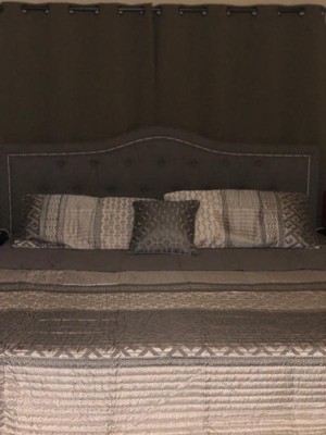 [This review was collected as part of a promotion.] I like the color combination which is the gray, silver and white and it is little glossy (but acceptable). Gray is a common color that it matches with so many decors. I got the queen size and it comes with two matching shams and a square decorative pillow. It has a modern/glam look. The cover isn't thick as a comforter so it doesn't keep you warm during winter but it can be used during spring and summer. When the bed is made with the coverlet set it looks good and it also covers the side rails of the bed. The quality of the coverlet is good and soft. We like the set.