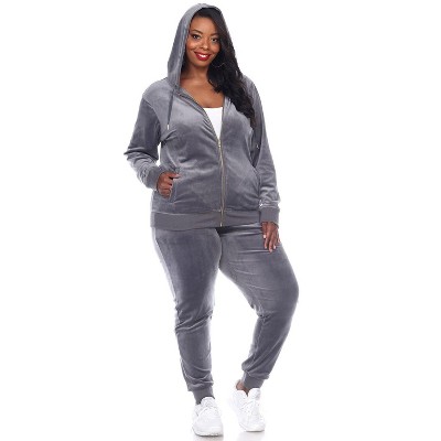 Product Name: Women's Plus Size 2 Piece Velour Tracksuit Set Pink 2X - White Mark