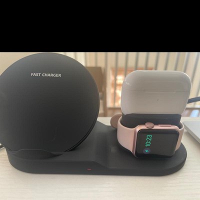 Charge your iPhone, Apple Watch, and AirPods faster and all at once with our three-in-one charging dock. This stylish charging dock is perfect for your nightstand or home office. One of The Simplest Ways to Charge. If you are still frustrated on the messing cables and cases, try this three-in-one charging dock. This charger stand will save your space and time. Just set your device on the wireless charge stand and let the power flow.