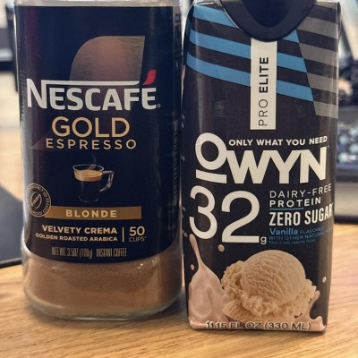 I’ve been drinking the Vanilla and No Nut Butter Cup flavor for about a year now and I really enjoy it. I usually mix it with two cups of espresso, sugar-free caramel syrup, and a large cup of ice. It tastes delicious—almost like a caramel iced coffee. It’s a great way for me to hit my daily protein goal while still enjoying my coffee. Highly recommend!